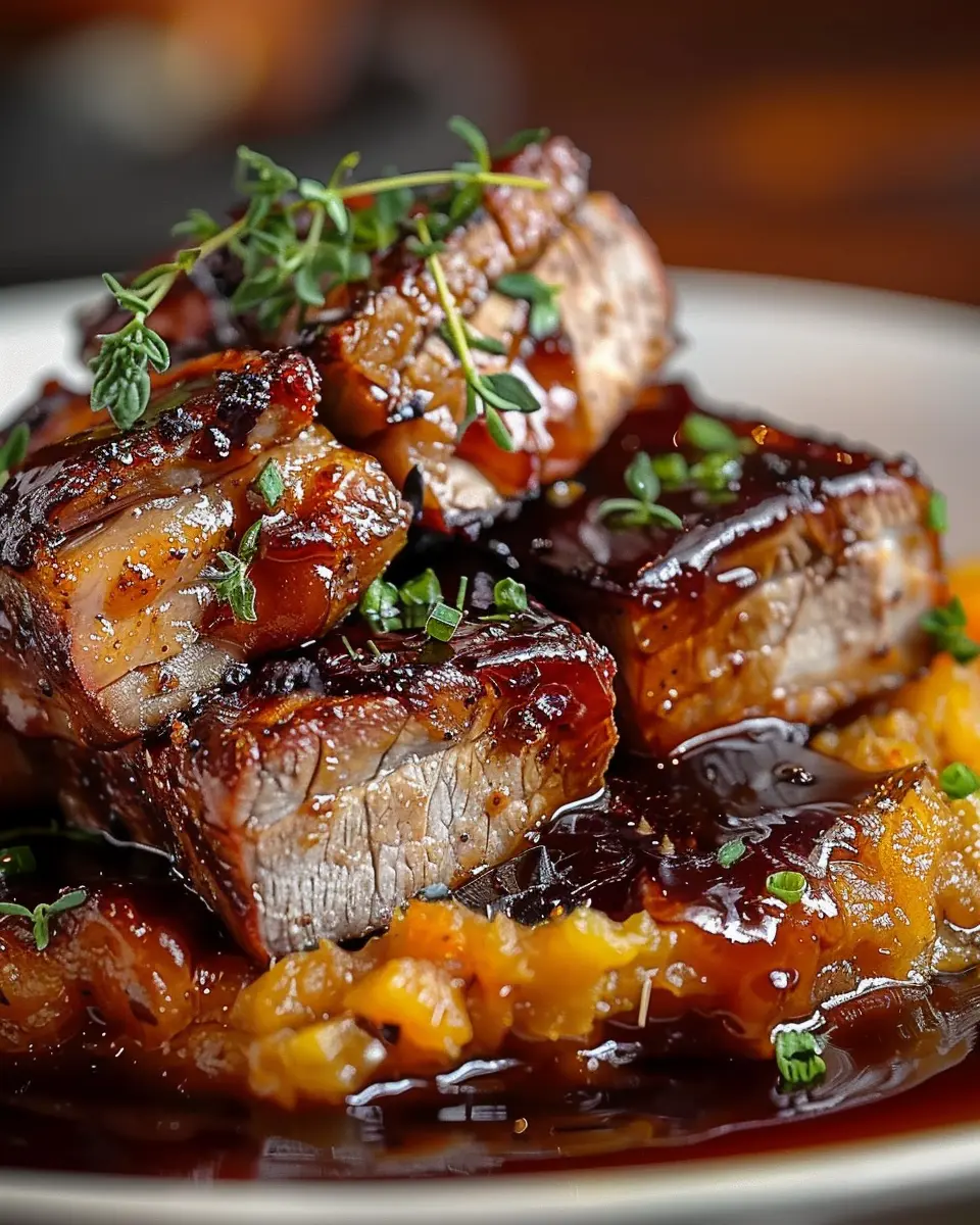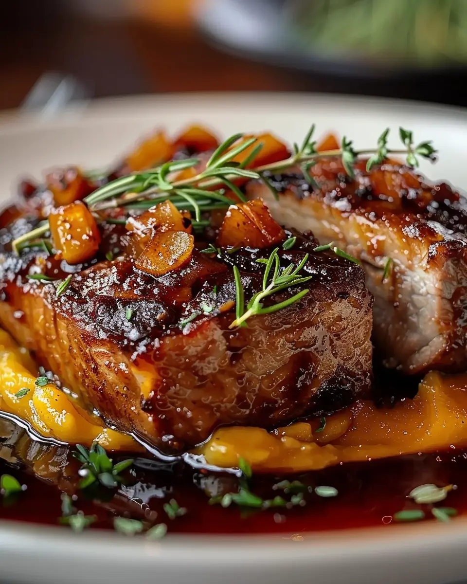 Now comes the moment we’ve all been waiting for—plating! Start with a scoop of your mashed sweet potatoes and elegantly slice the beef. Arrange it on top, then drizzle that irresistible sauce over the beef. For a finishing touch, feel free to garnish with some fresh chopped parsley or thyme.