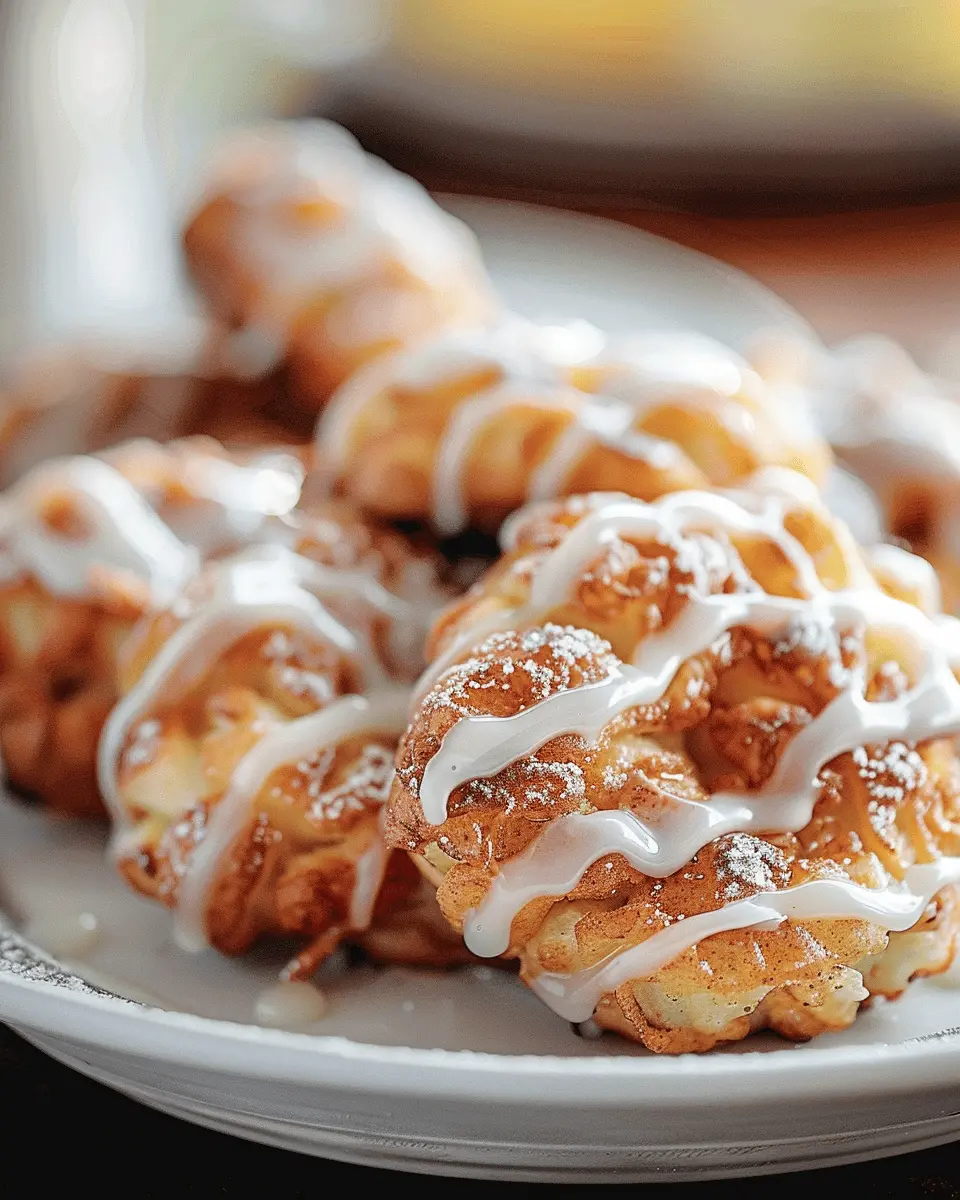 To make it even richer, fold in some finely chopped pecans or walnuts. These not only add a lovely crunch but also elevate the overall flavor. Drizzle these fritters with a creamy vanilla glaze made of powdered sugar, vanilla extract, and a little milk for a truly decadent treat.