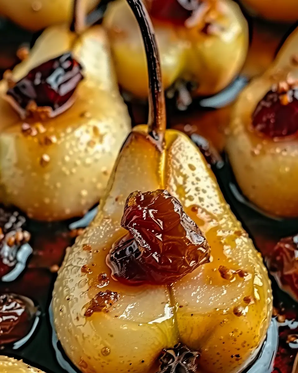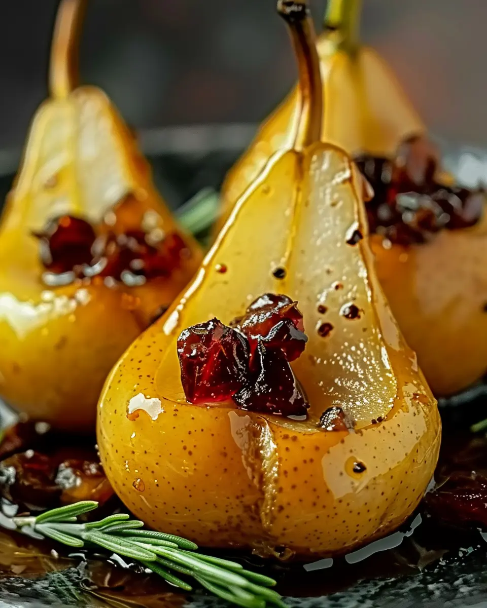 Once the pears are perfectly roasted and your cranberry mixture is bubbling away, it’s time to assemble! Take the pears out of the oven and carefully spoon the cranberry mixture into the hollowed-out centers. Be generous; you want every bite packed with flavor!