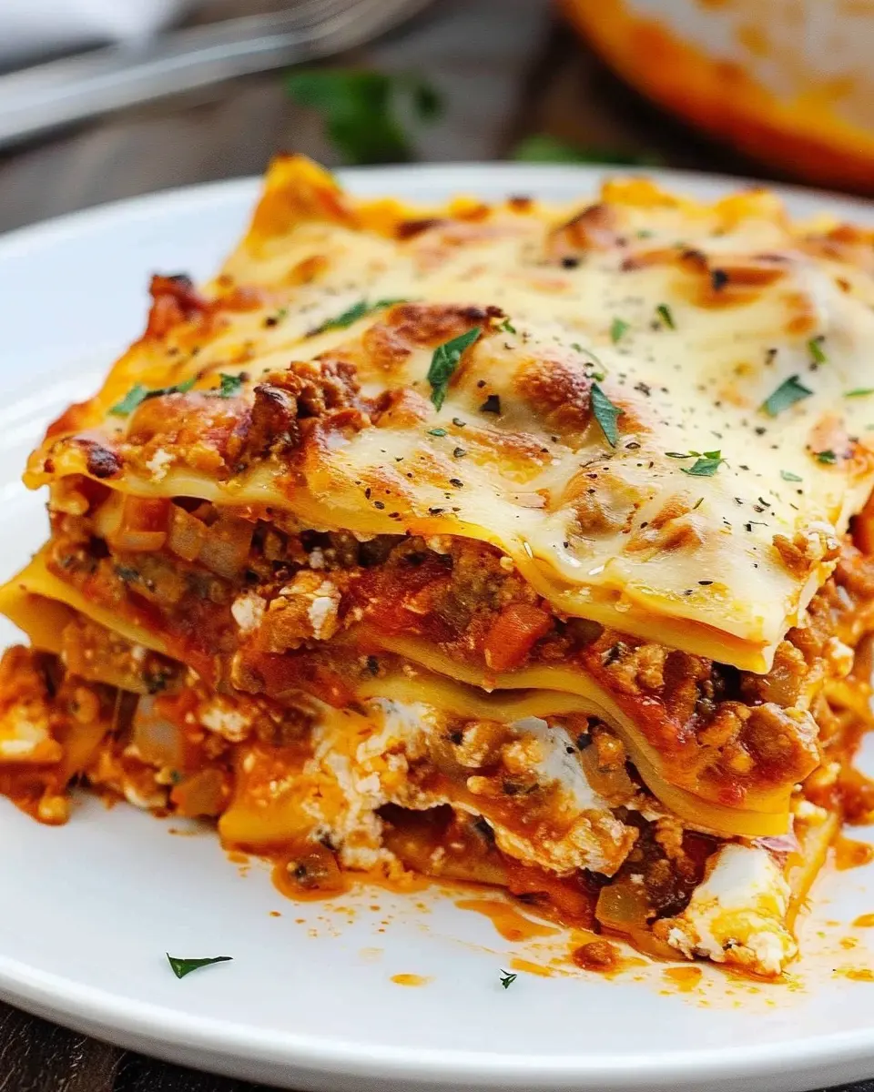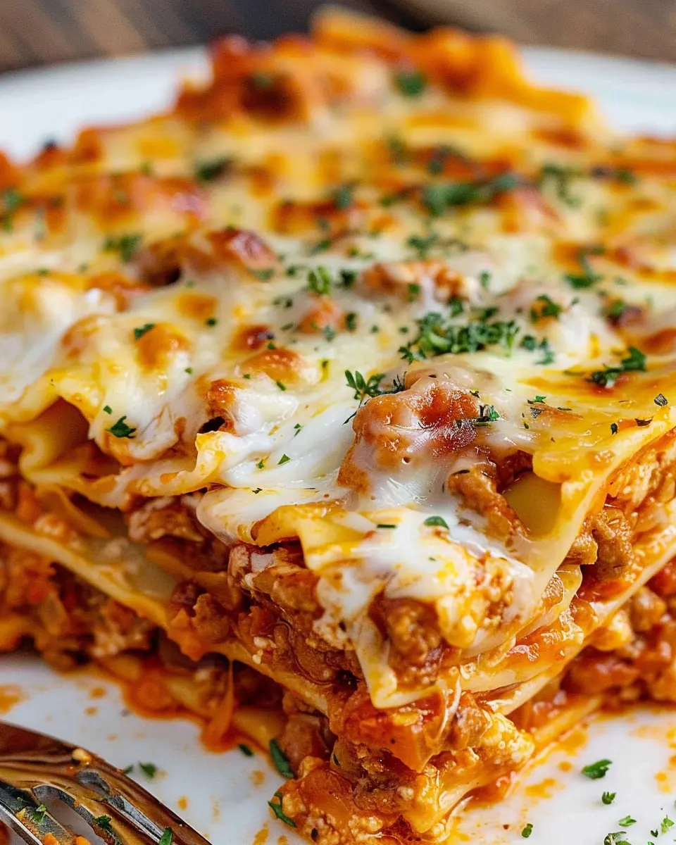 PrintBest Homemade Lasagna: A Juicy Twist with Turkey Bacon and Chicken Ham