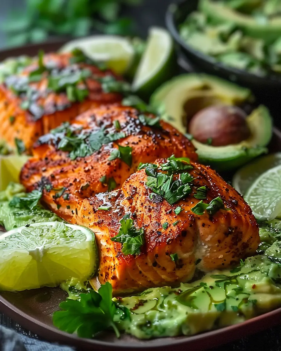 A flavorful and healthy dish that combines the richness of salmon with the creaminess of avocado and the zest of lime, perfect for any occasion.