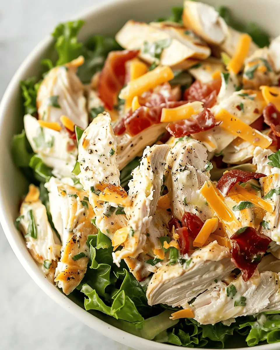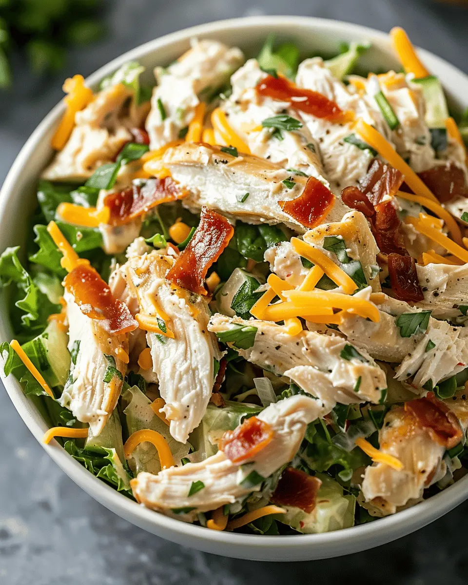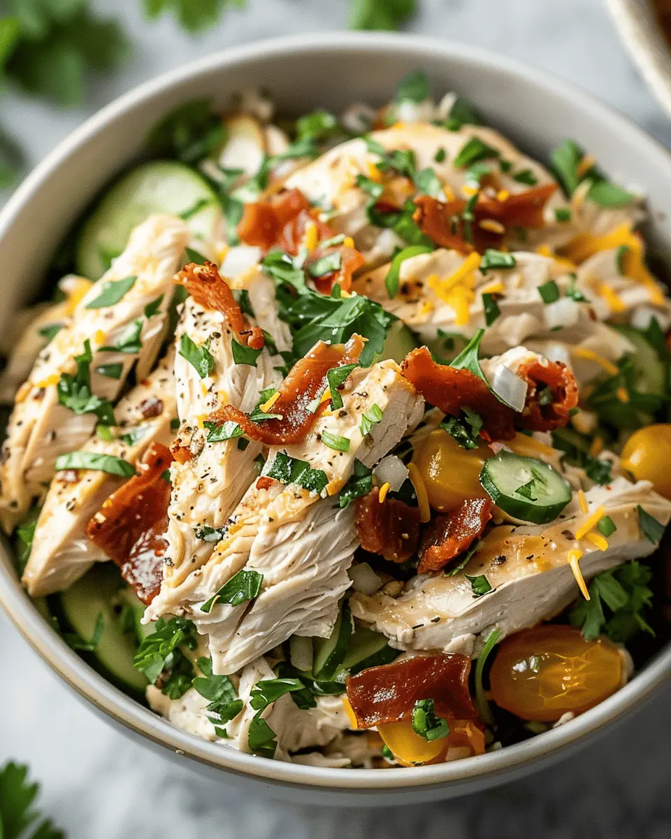 Packed with flavor and protein, this salad includes a combination of succulent chicken, crunchy veggies, and savory Turkey Bacon, creating a delightful balance of textures and tastes. This dish fits seamlessly into a low-carb, high-protein regimen, making it ideal for anyone looking to maintain energy levels throughout a hectic workday. Plus, it’s easy to customize. Want an extra kick? Toss in some jalapeños or add a rich dressing of your choice!