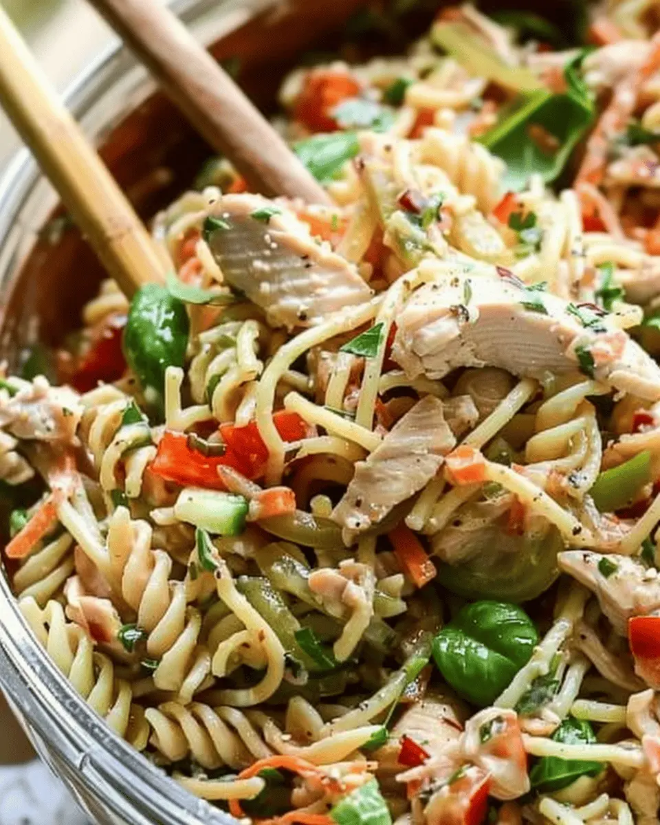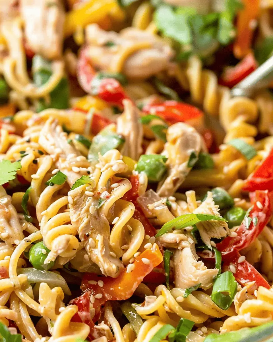 PrintChinese Chicken Pasta Salad: A Fresh Twist with Turkey Bacon