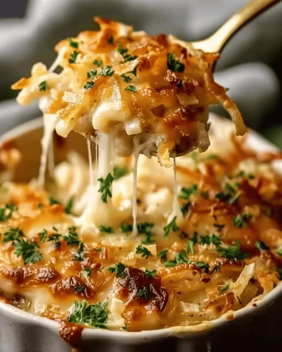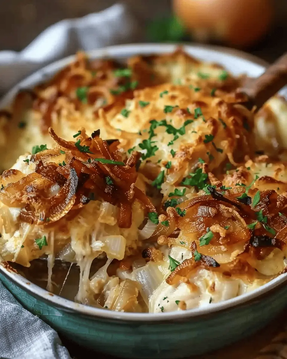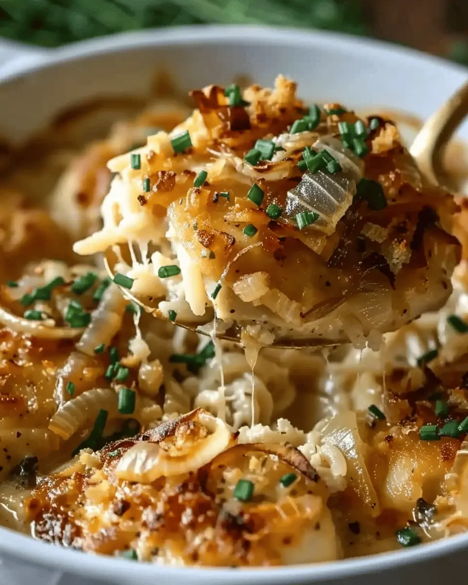 In wrapping up our exploration of Comforting French Onion Chicken, it’s clear this dish is a delicious twist on a classic French favorite. Perfect for a cozy weeknight dinner or an impressive gathering, it shines with layers of flavor and warmth. The combination of tender chicken, aromatic onions, and gooey cheese creates a harmony that’s comforting to the soul.