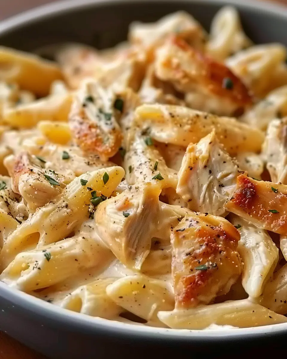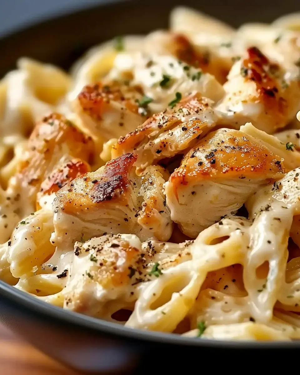 • Mix and Serve: Add the cooked pasta and sliced chicken to the skillet with the sauce. Stir everything together gently, allowing the pasta to soak up the flavors of the sauce. If things seem too thick, slowly add some of that reserved pasta water until you reach a creamy, rich texture.