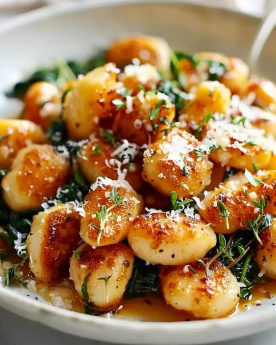 And there you have it—a beautiful plate of crispy gnocchi, perfectly seasoned and bursting with flavor. This dish is not just a meal; it’s a celebration of textures and tastes. Invite friends over, pour some sparkling water infused with lemon, and enjoy a delightful evening filled with laughter and great food.