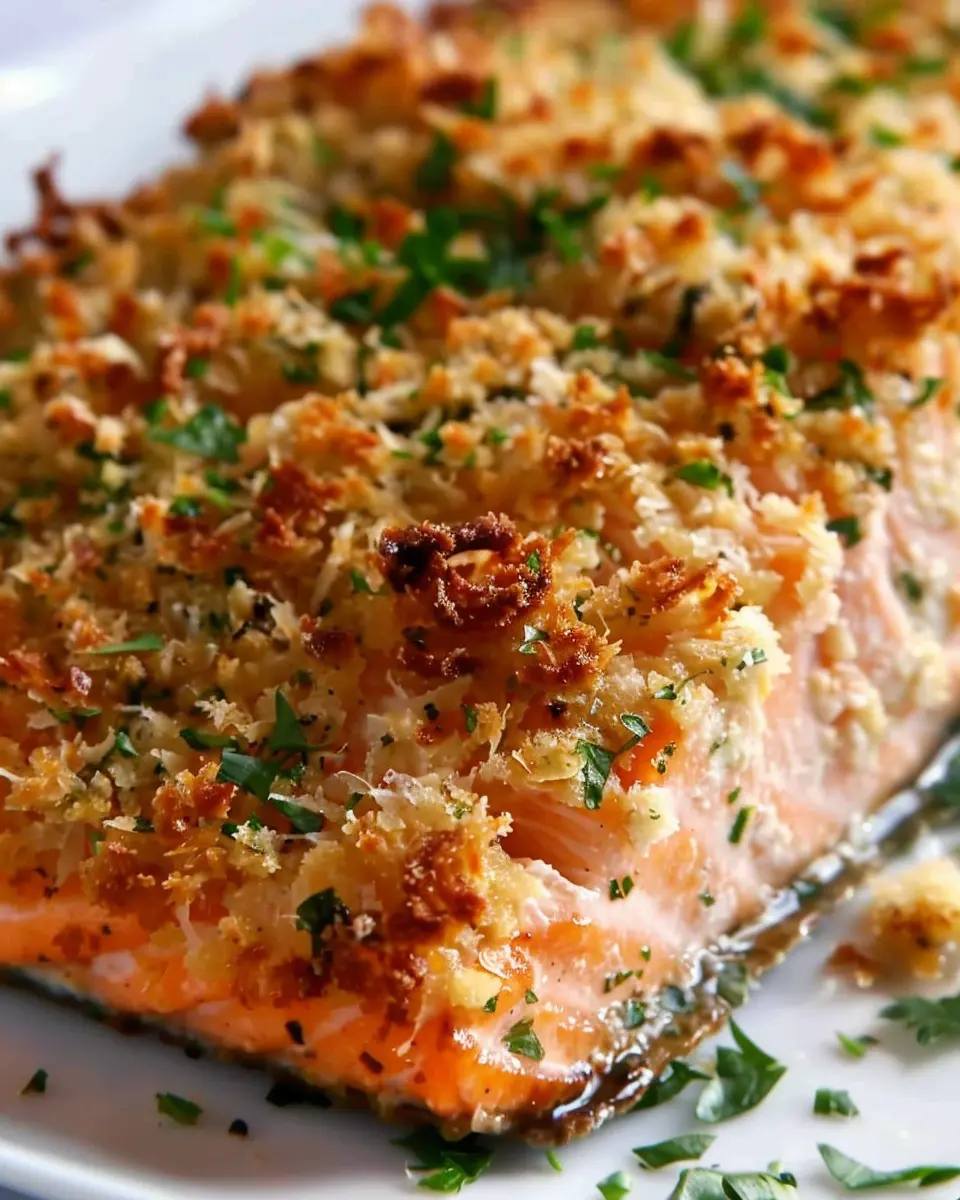 A delightful recipe for a simple yet elegant dish, Crispy Parmesan Crusted Baked Salmon.