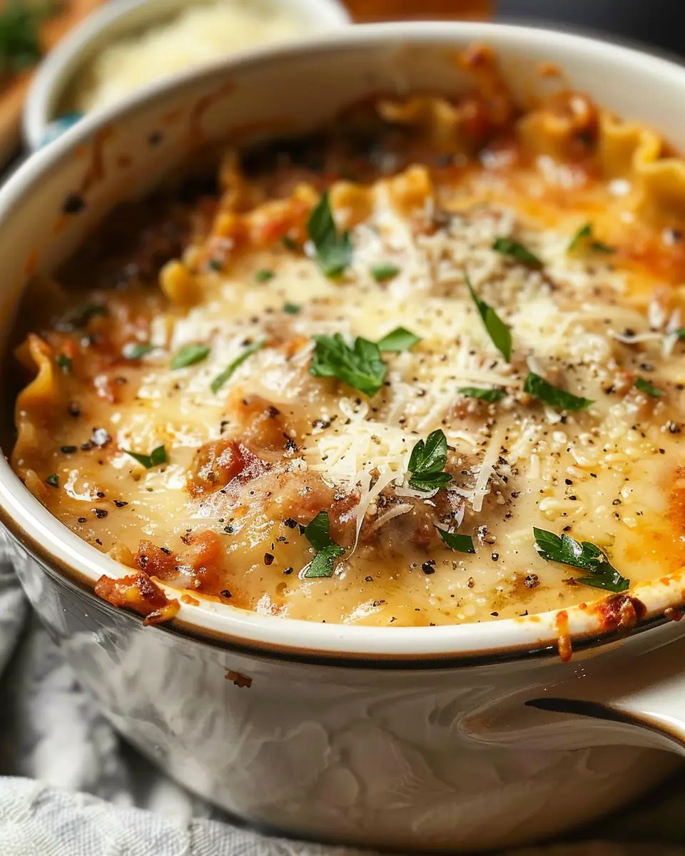 A warm and delicious recipe for creamy lasagna soup featuring the savory goodness of turkey bacon, perfect for a cozy dinner.