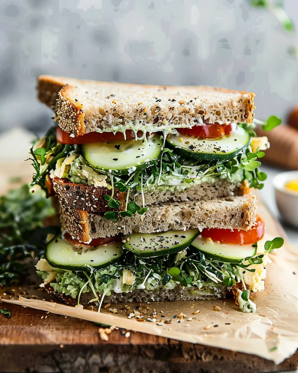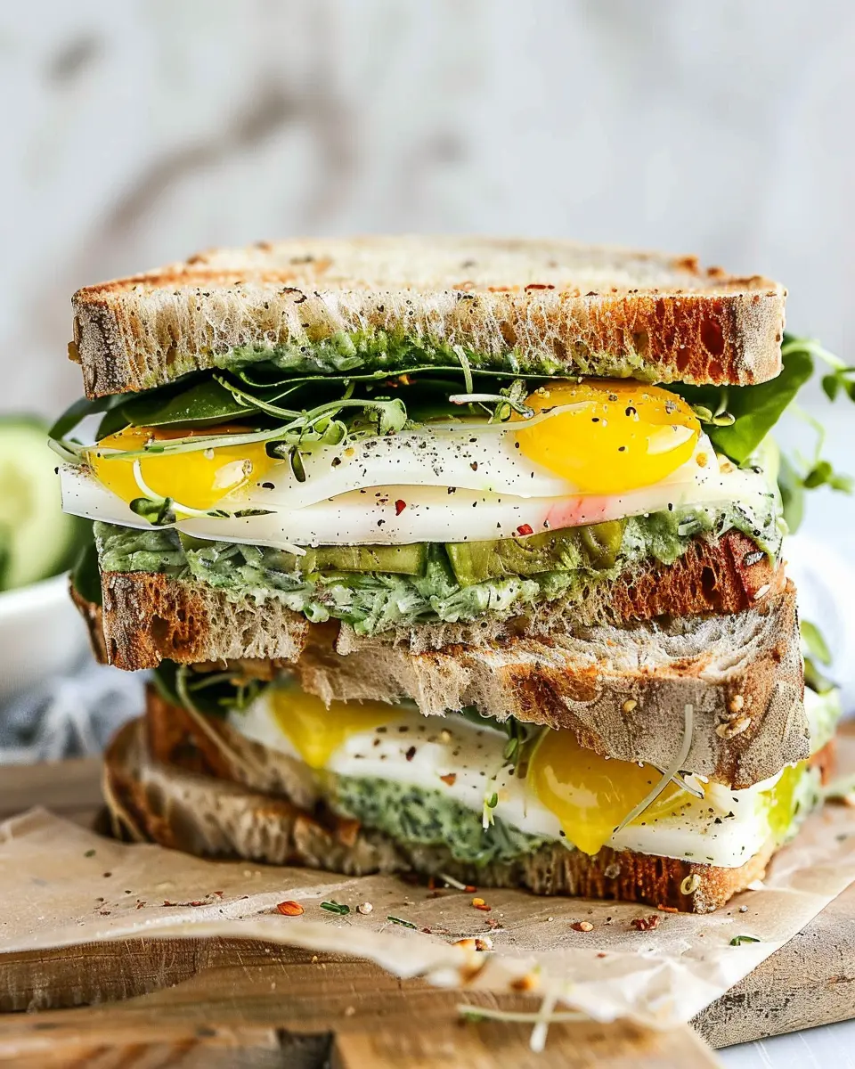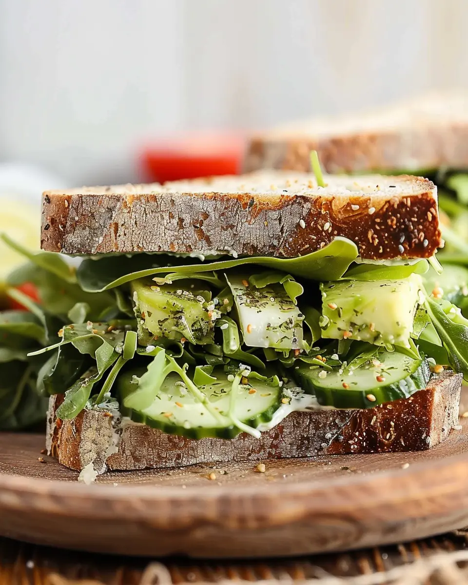 Presentation matters, especially when you’re showing off your delicious Green Goddess Sandwich. Try stacking it high with fresh herbs spilling out, or cut the sandwich diagonally and serve it on a colorful plate with a garnish of edible flowers or sliced avocado. Using a wooden board as a base can also add a rustic charm, making your meal feel special.