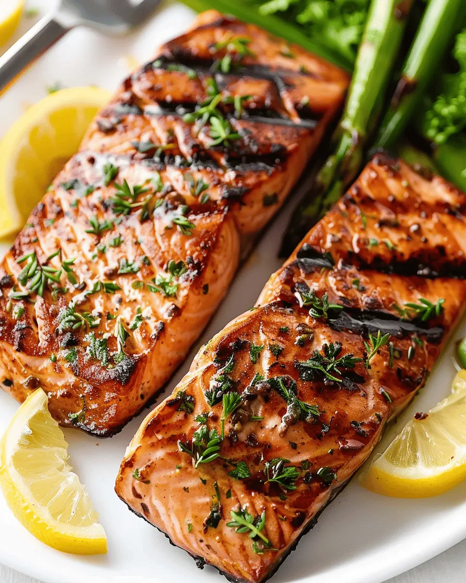 When ready, serve your grilled salmon with a squeeze of fresh lemon on top and a sprinkle of your favorite herbs. This small touch elevates the dish to a new level!