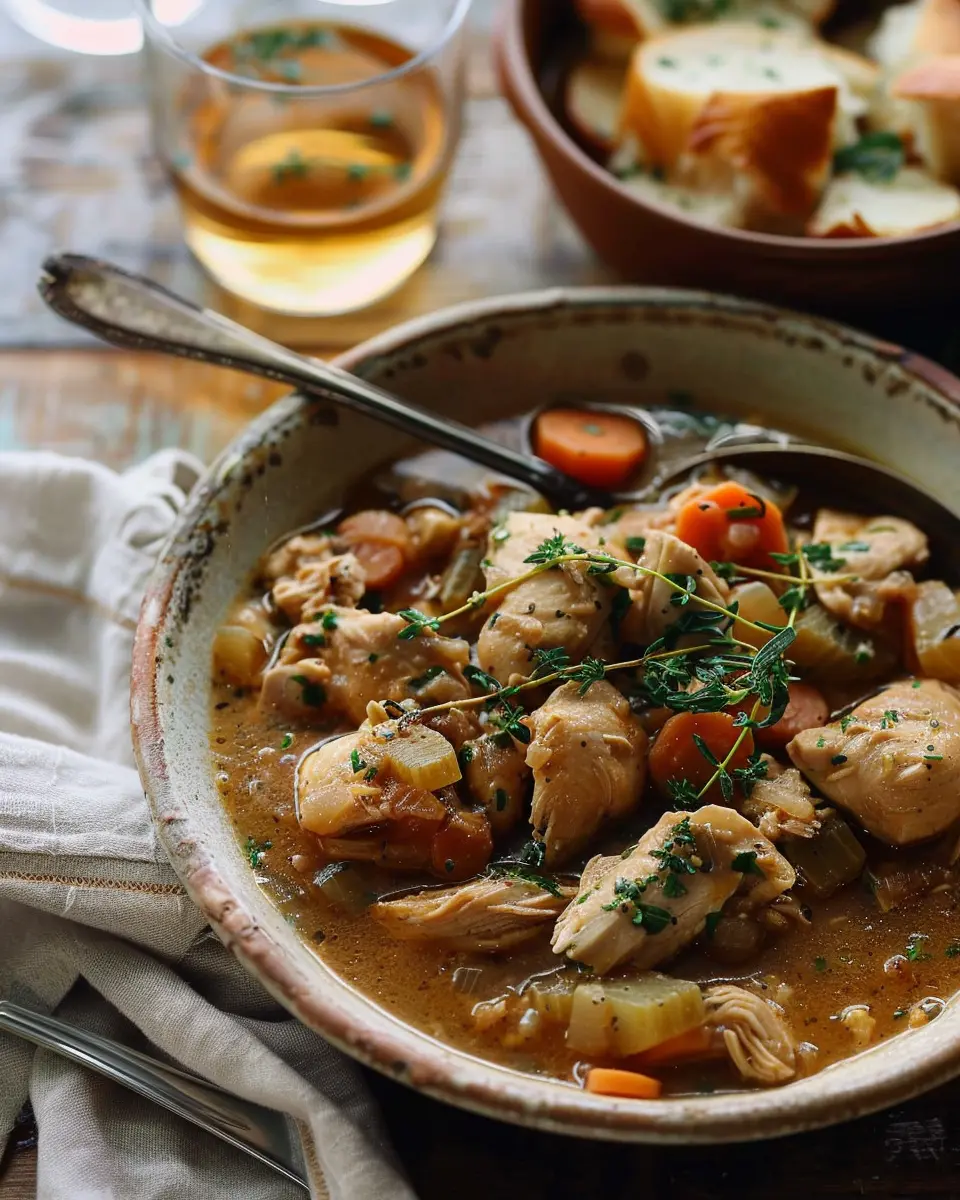 Enjoy this delightful Ina Garten Chicken Stew with a cozy twist featuring turkey bacon, perfect for chilly evenings.