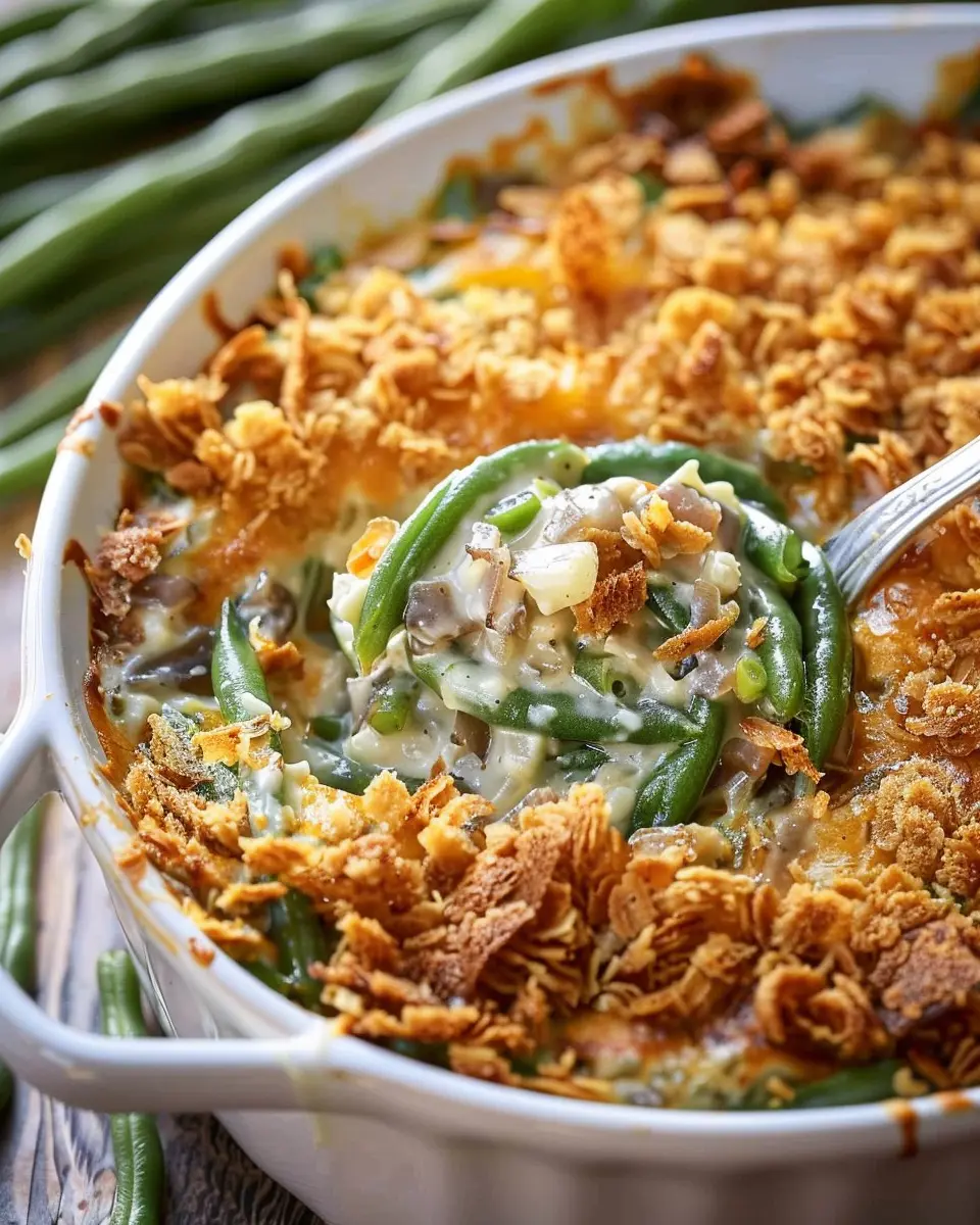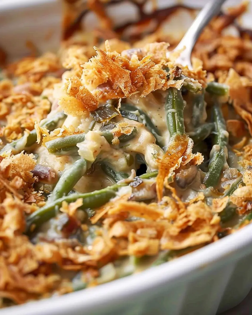 PrintIrresistible Campbells Green Bean Casserole with Turkey Bacon Delight