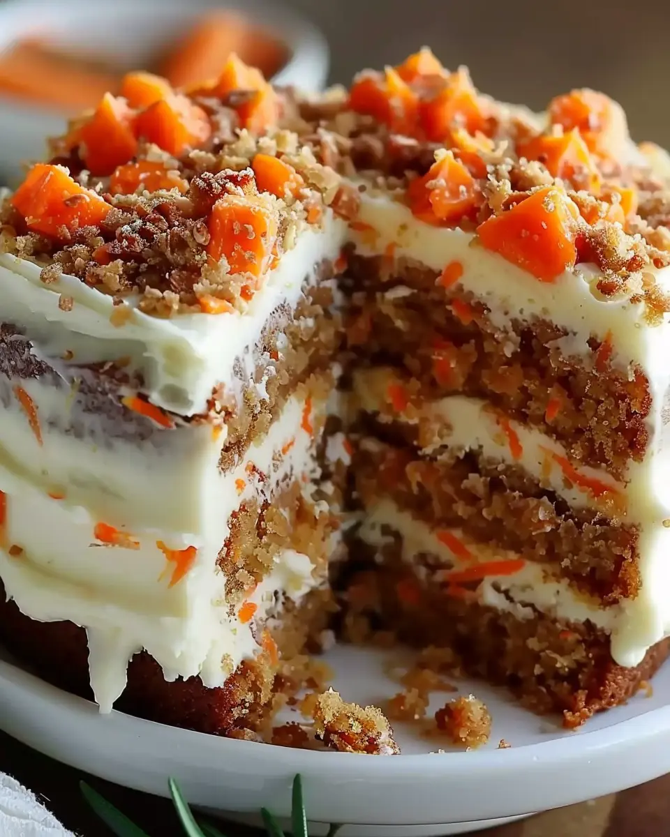 Experience the rich flavors of a moist and decadent carrot cake, perfect for family gatherings or a sweet treat at home.