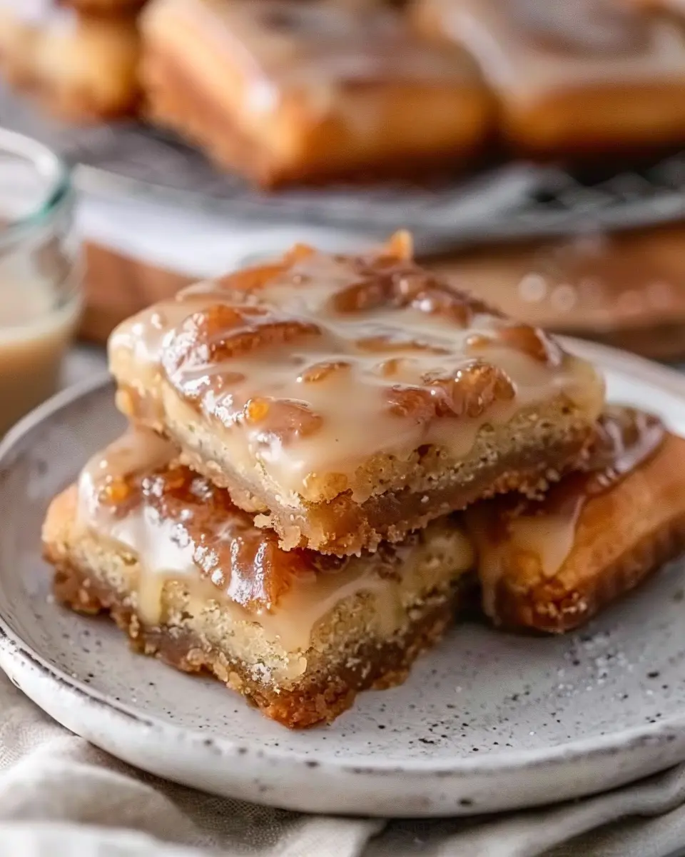 After baking, let your bars cool in the pan for about 10 minutes before transferring them to a cooling rack. While they cool is the perfect time to whip up a simple maple glaze. Combine 1 cup of powdered sugar with 2 tablespoons of maple syrup and enough milk to reach your desired consistency—a drizzle-worthy mixture!