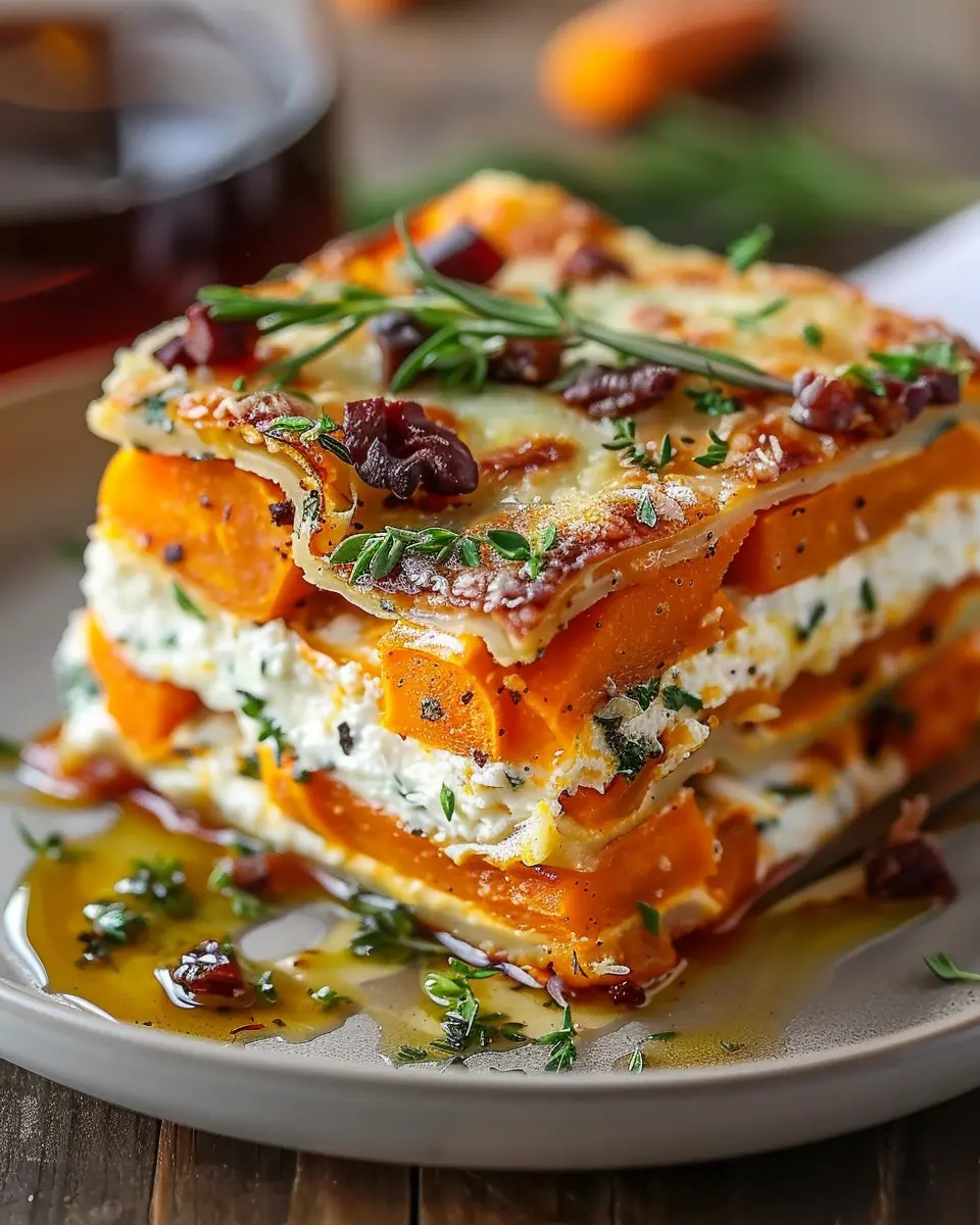 This Layered Sweet Potato Butternut Squash Carrot Lasagna is a delightful and healthy dish perfect for any occasion.