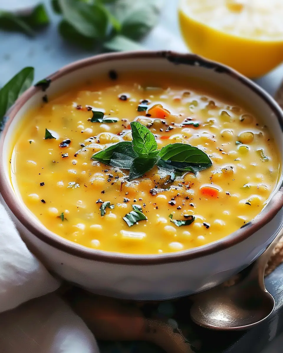 A delightful and hearty soup made with lentils and lemon, perfect for a cozy meal.