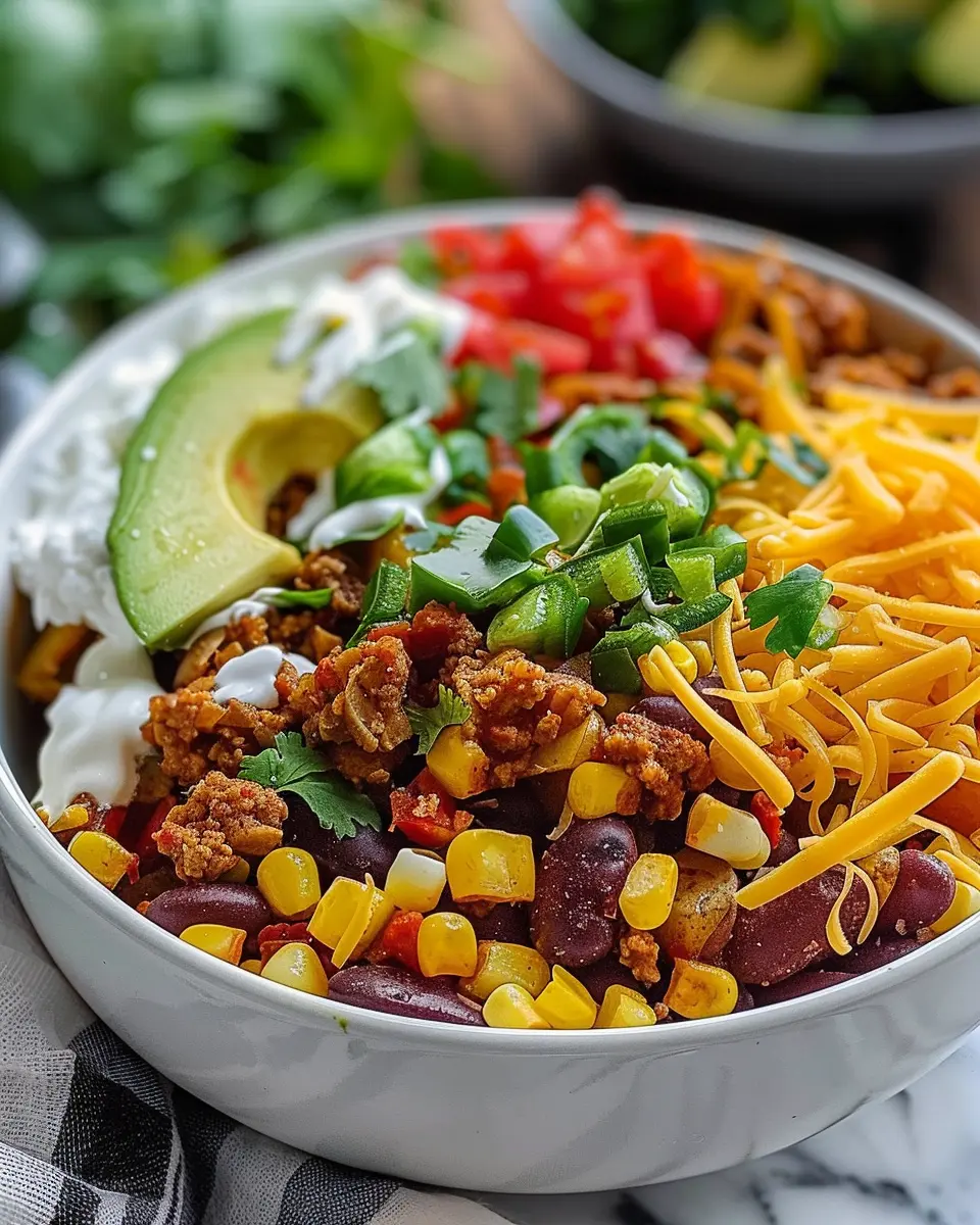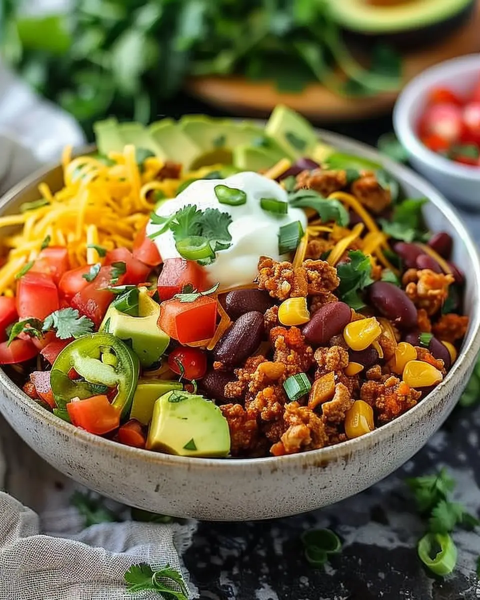 The versatility of this dish is what truly sets it apart. Picture a base of crispy baked potatoes topped with your favorite taco fillings. It’s a dinner that invites customization, allowing each person to make it exactly to their taste. Whether you’re a fan of Turkey Bacon, Chicken Ham, or seasoned beef, there’s a way to make this bowl just right for you and your family. Plus, the combination of textures—from crunchy toppings to creamy sauces—ensures that each bite is a delightful surprise.