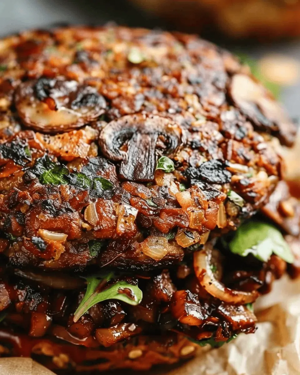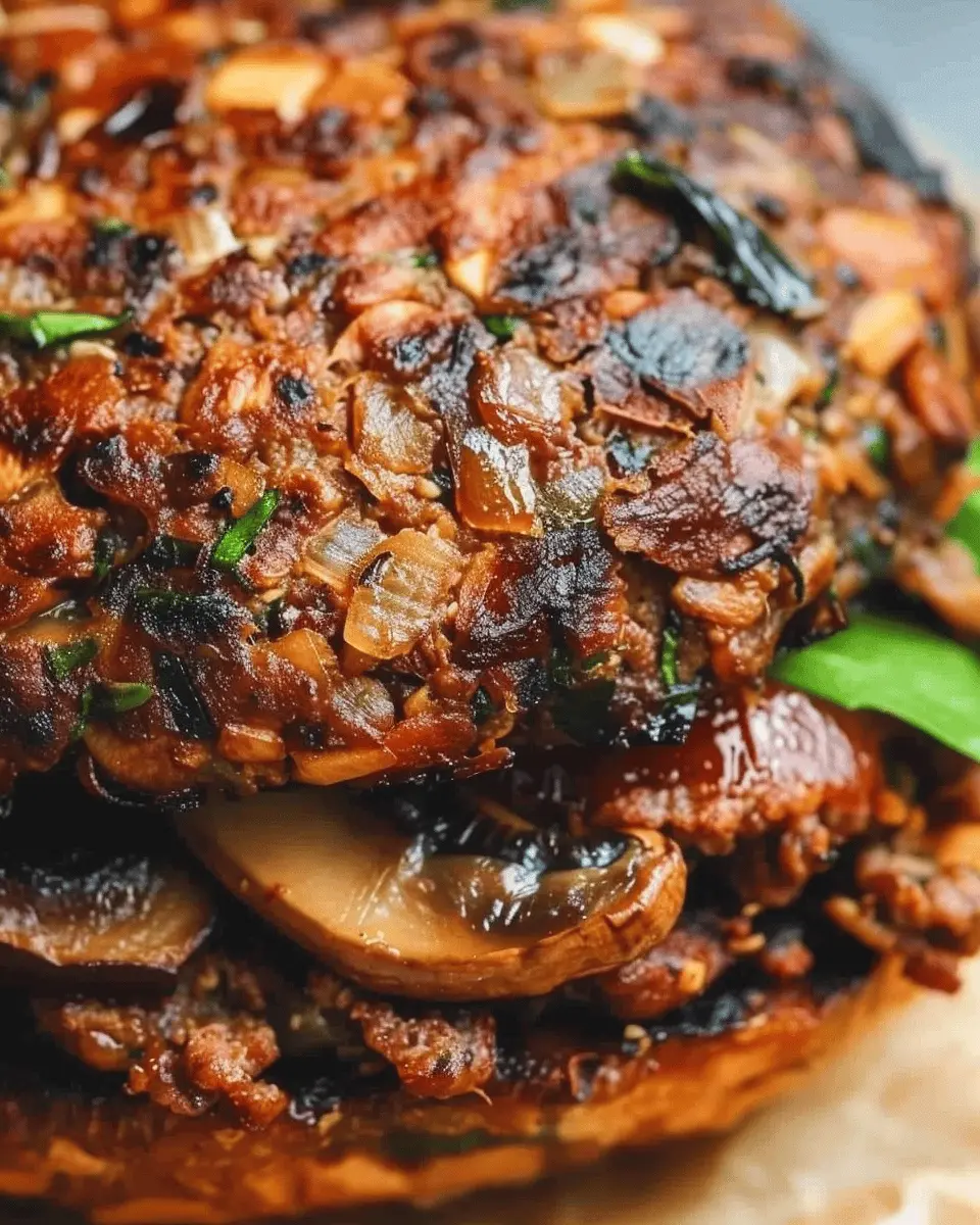 PrintMushroom Veggie Burger Delight: Easy Recipe with Turkey Bacon