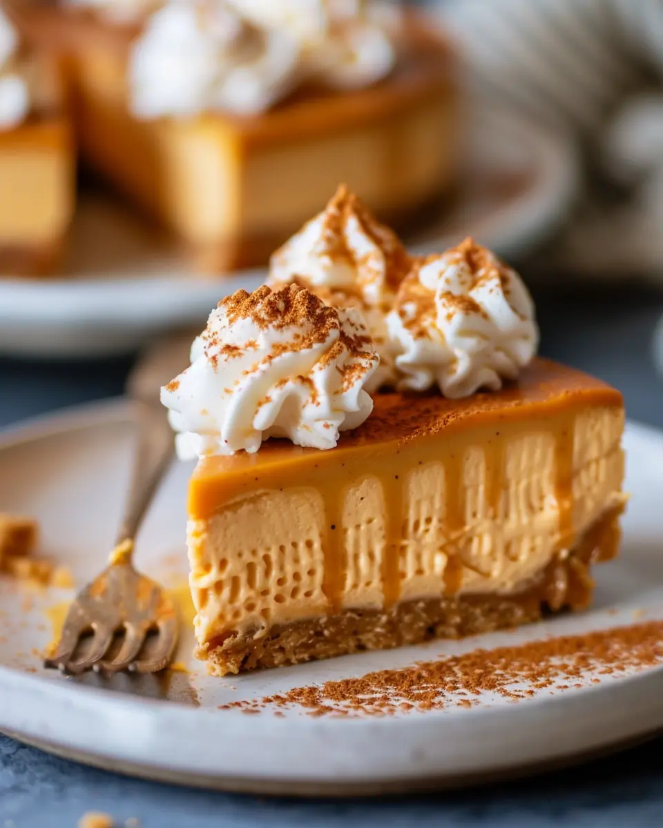 A delightful no-bake pumpkin cheesecake that combines the flavors of autumn in a creamy dessert.