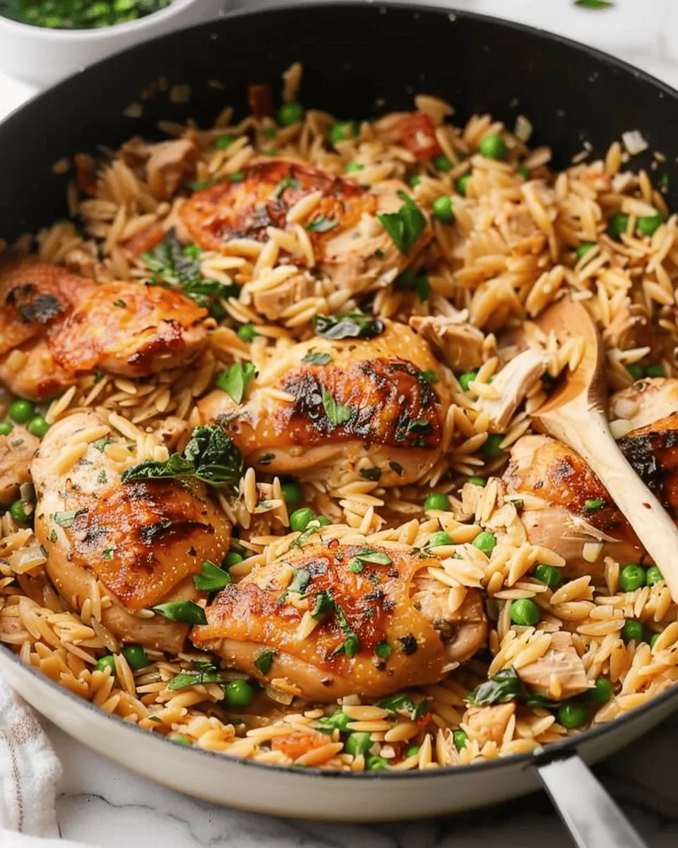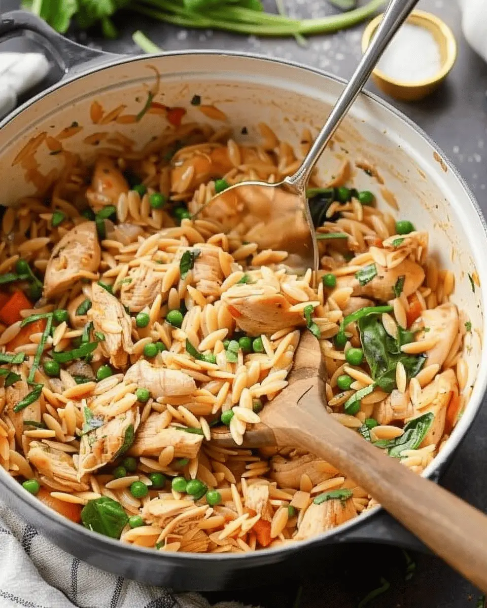 Keywords: One Pot Chicken Orzo, easy recipes, family meals