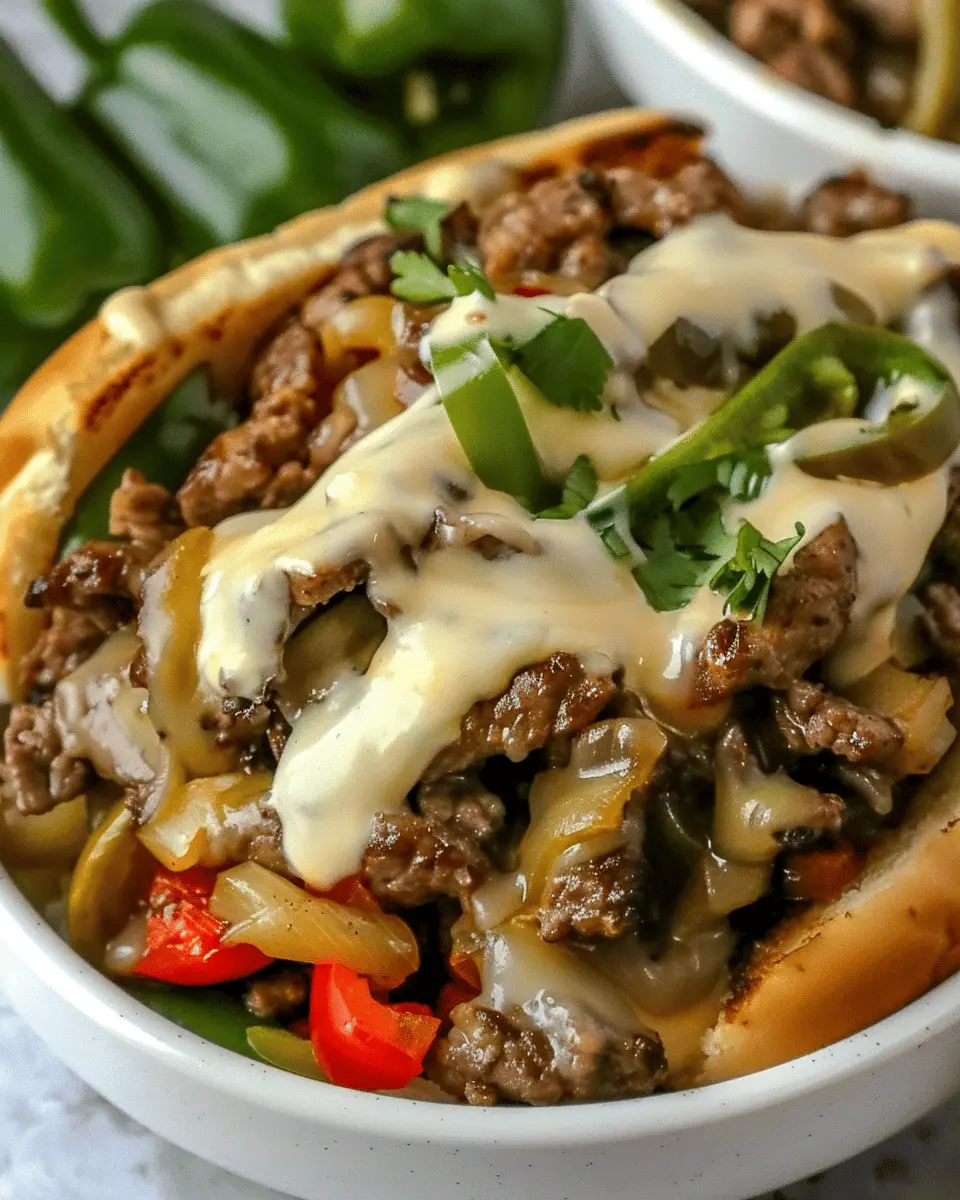 Lastly, serve your bowls hot, adding any optional toppings like hot sauce or fresh herbs for that extra zing. Enjoy your homemade Philly cheesesteak bowls—a delicious blend of flavors that are sure to impress!
