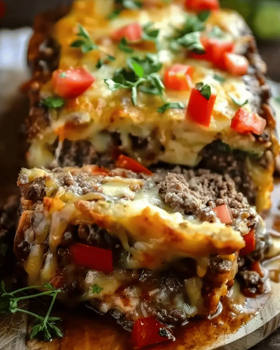 Imagine combining juicy beef and savory chicken ham, topped with perfectly melted cheese—it’s a flavorful hug on a plate. Plus, it’s a fantastic way to elevate traditional meatloaf into something special for your friends or family. The use of turkey bacon adds a delightful crunch and unique taste, making it a standout dish.