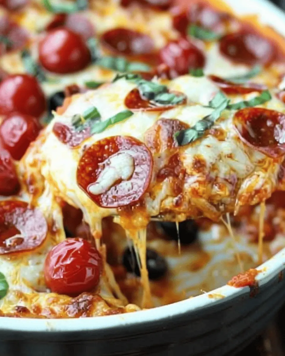 In summary, pizza dip is an irresistible combination of flavors that brings the joy of your favorite pizza right to a bowl. Whether you’re hosting a gathering or enjoying a cozy night in, this dish is perfect for sharing—or not! With its creamy texture, savory toppings, and the perfect amount of spice, it keeps everyone coming back for more. Plus, it’s incredibly versatile—feel free to customize it with your favorite meats, like Turkey Bacon or Chicken Ham, or load it up with fresh veggies. For a delightful pairing, consider serving with crispy breadsticks or tortilla chips. Dive into this easy-to-make recipe and create your next go-to snack!