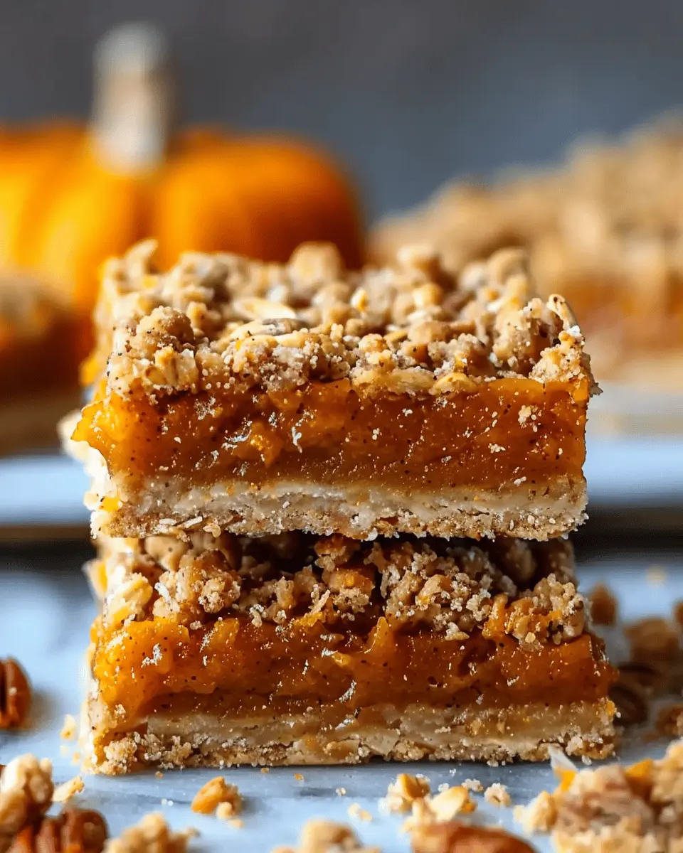 These Pumpkin Pie Crumble Bars are the perfect blend of pumpkin flavors and a crumbly topping, making them an irresistible treat for any occasion.