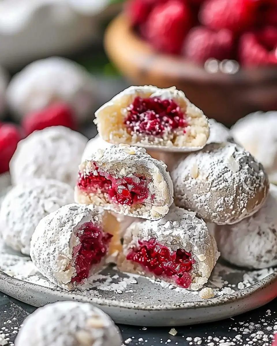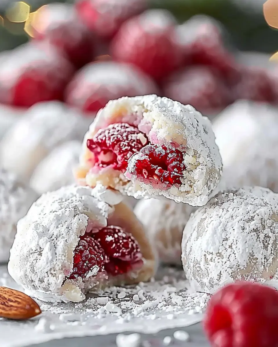 PrintRaspberry Almond Snowball Cookies: Easy Treats for Every Occasion
