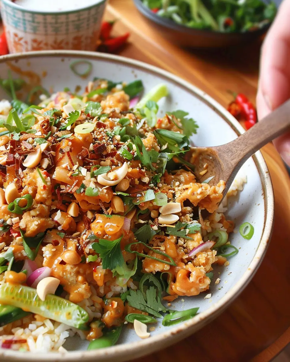 And there you have it! With just a few simple steps, you’ve crafted a stunning satay crispy rice salad. Not only does it look fabulous, but it also tastes incredible. Perfect for a quick lunch or dinner, this dish brings together the vibrant tastes of Southeast Asia right to your kitchen. Happy cooking!