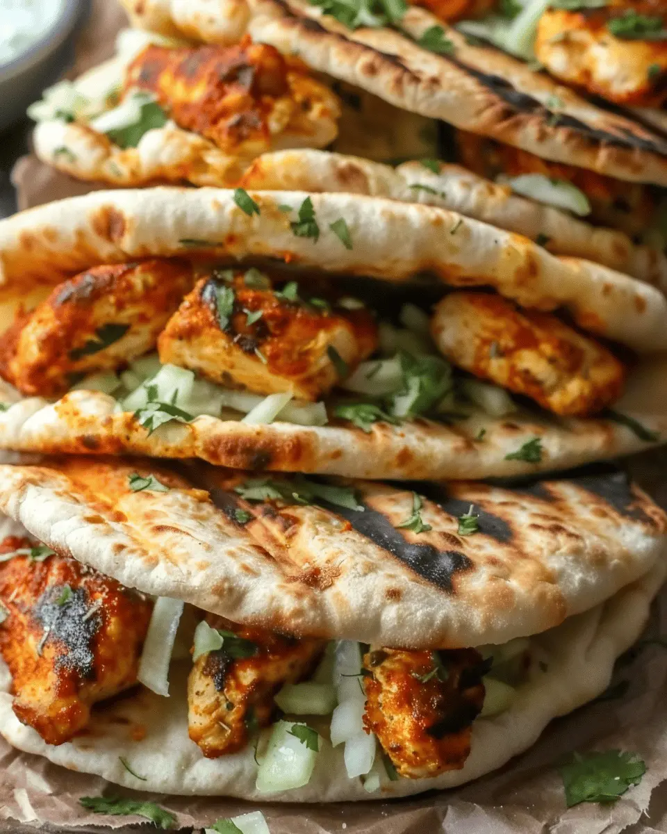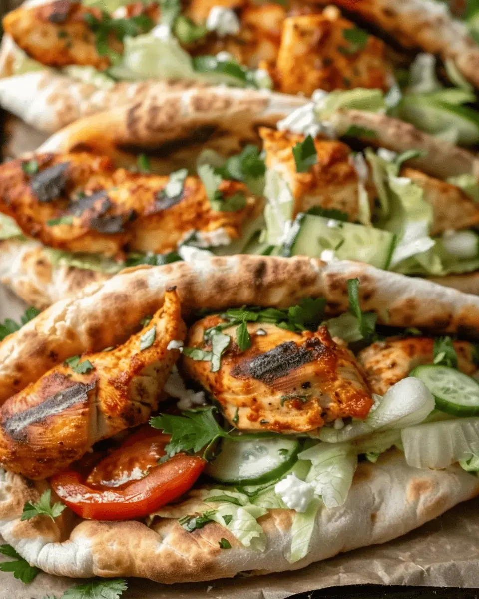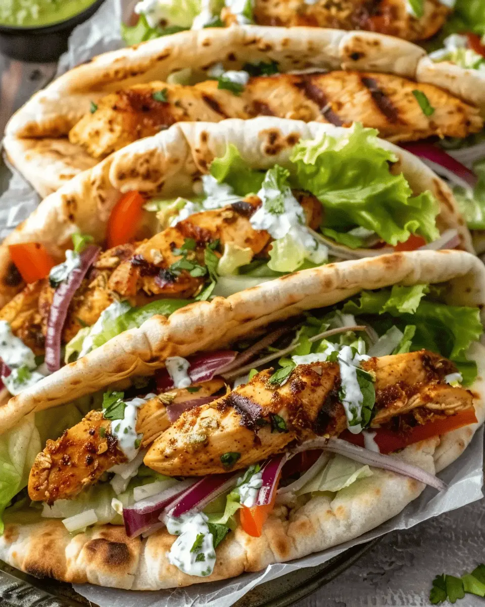 A delicious and easy dinner option featuring chicken and fresh vegetables in warm pitas.