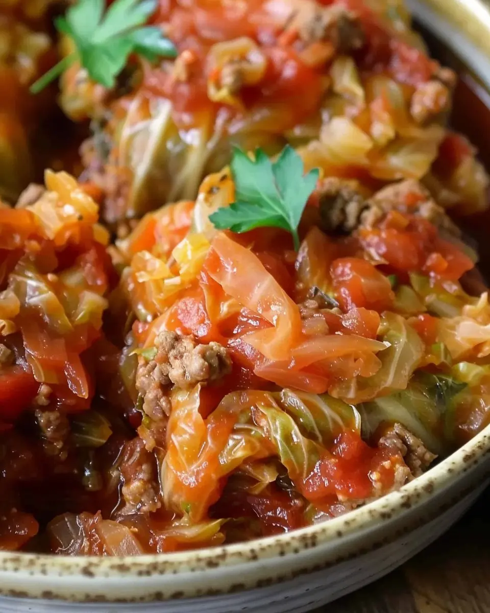 A delicious and easy recipe for unstuffed cabbage rolls cooked in a slow cooker, packed with flavor and perfect for a comforting meal.