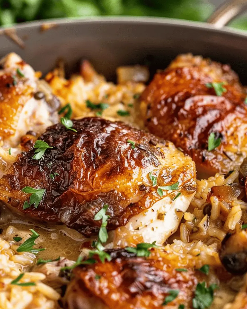 PrintSmothered Chicken and Rice: A Juicy Comfort Food Delight