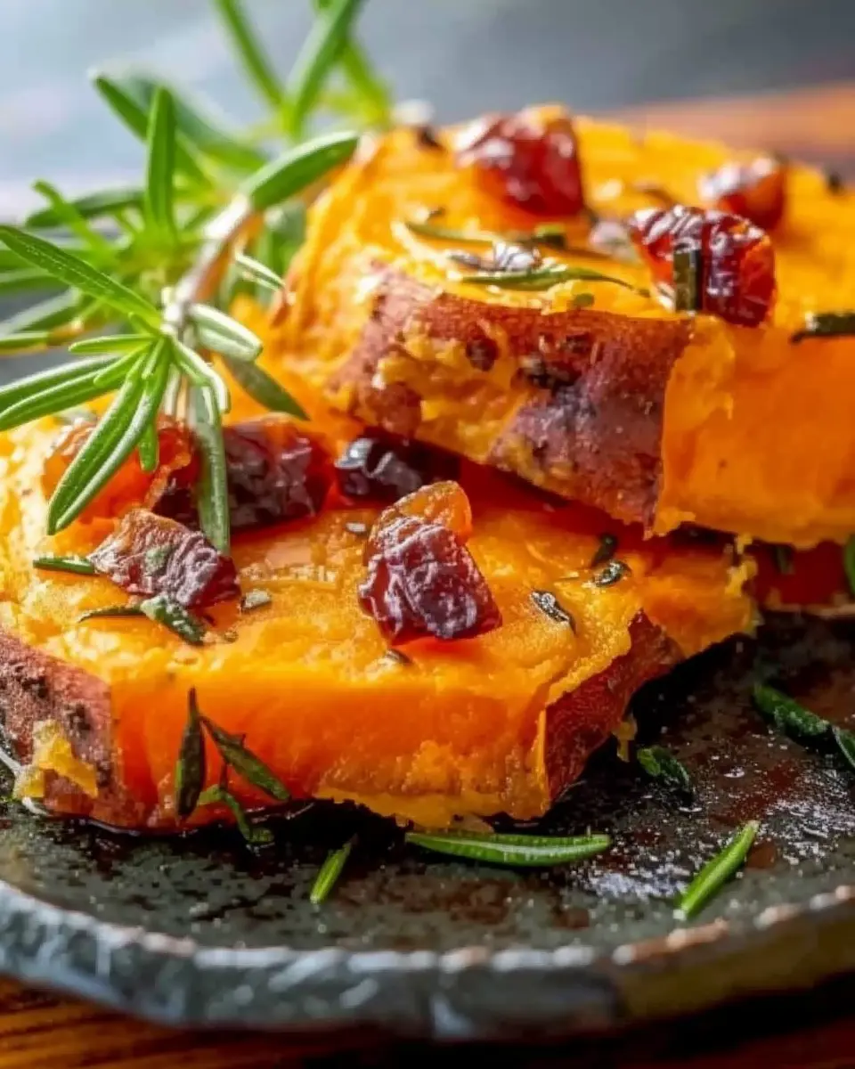 Add cranberries and turkey bacon: Sprinkle some dried cranberries and crispy chopped turkey bacon over the sweet potatoes. These additions provide a delightful contrast to the creaminess of the dish with a touch of sweetness and savory depth.