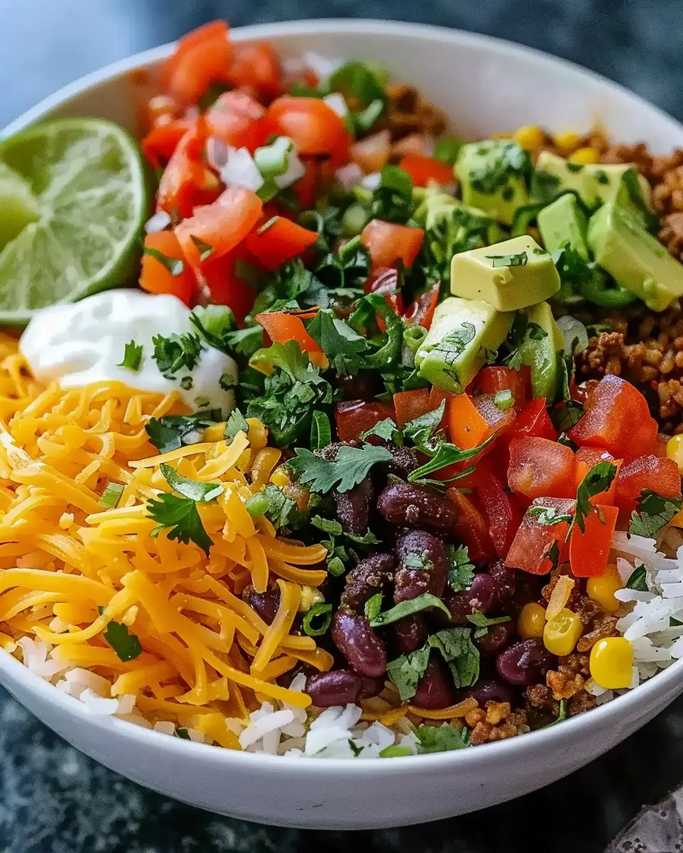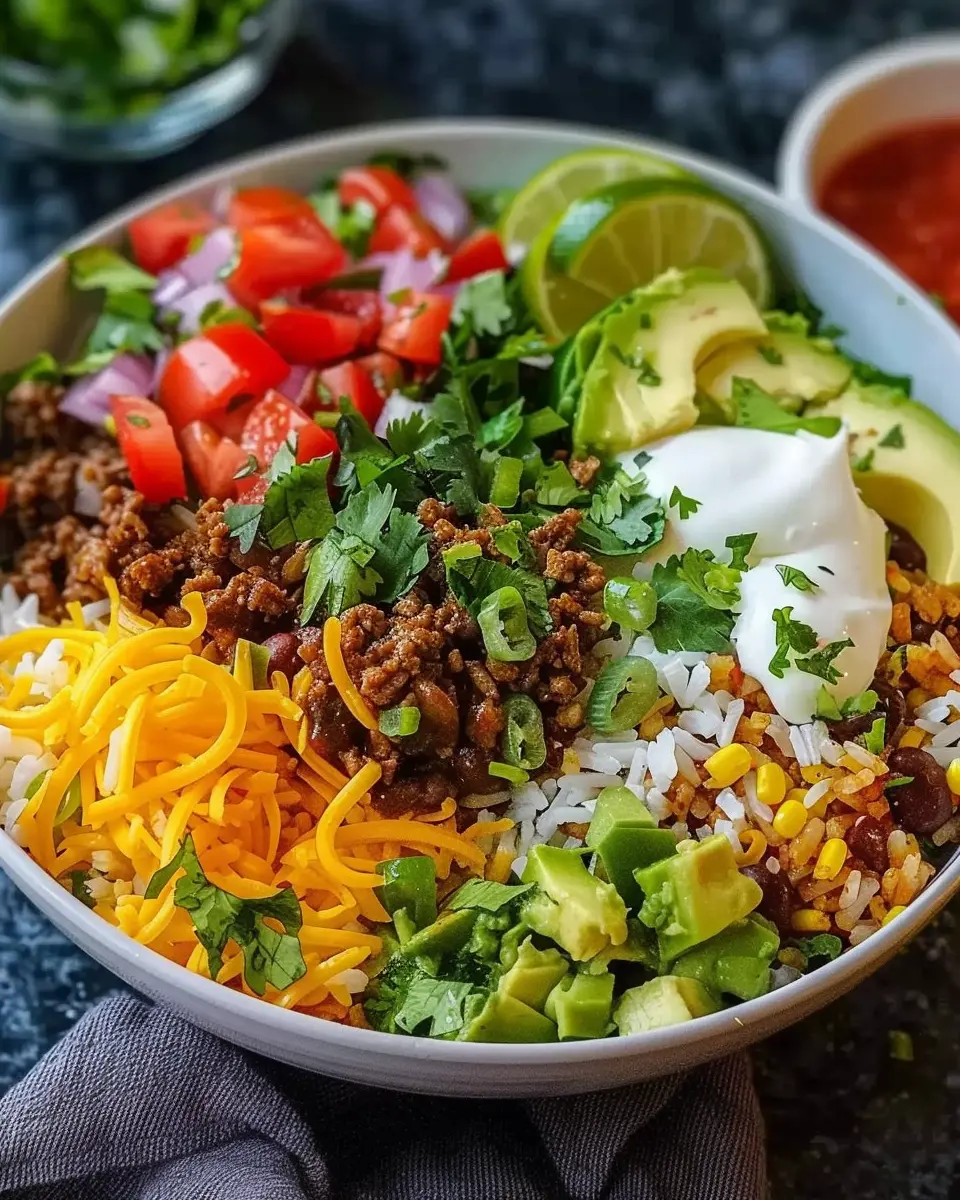 A delicious and simple Taco Rice Bowl recipe that combines all your favorite taco ingredients in a flavorful bowl.