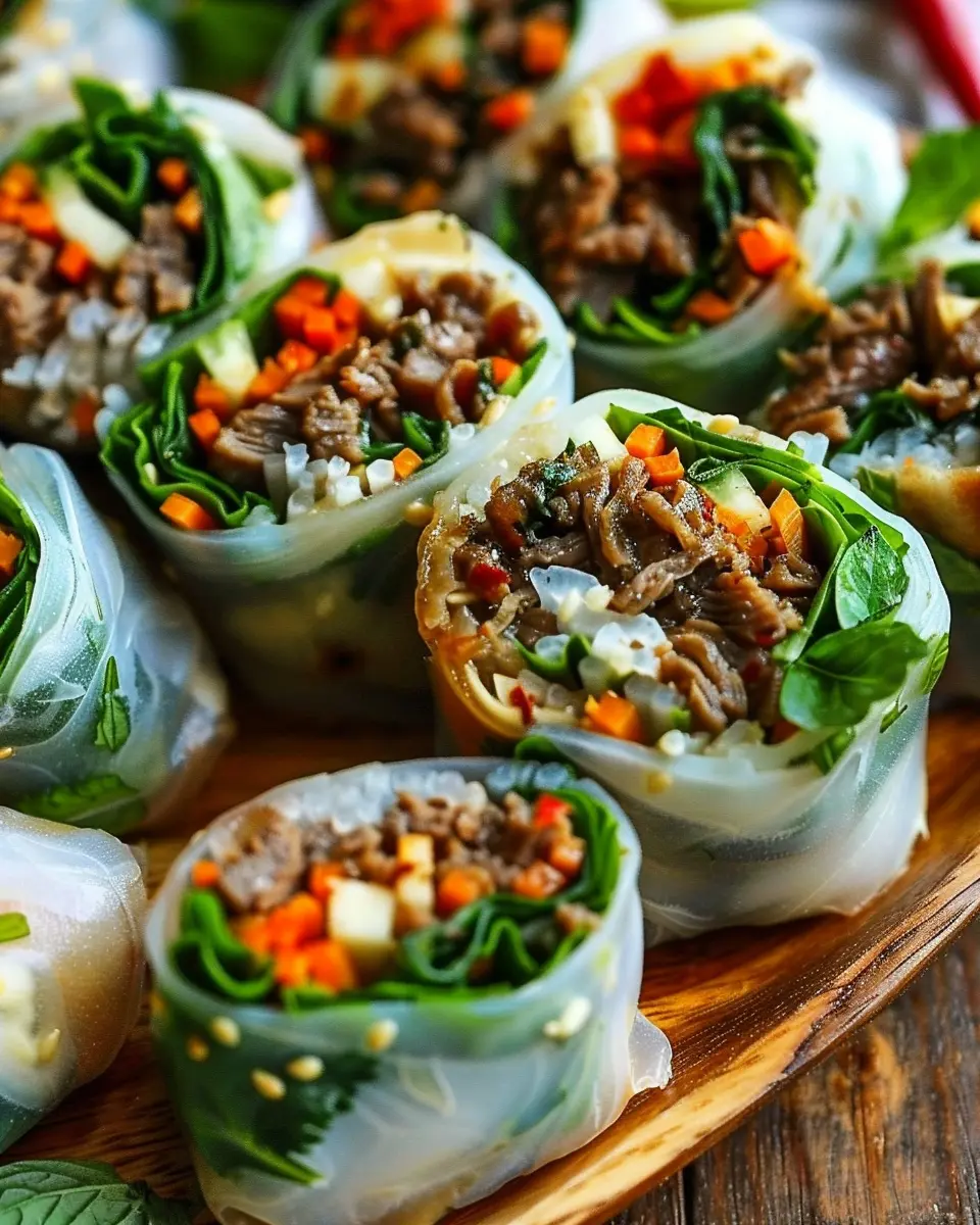 For those who crave heat, Spicy Thai Beef Rolls will tickle your taste buds. Toss crushed red pepper flakes or chopped Thai chilies into your beef mixture to infuse a fiery kick. You can create a dipping sauce using chili paste, garlic, and a splash of honey to balance the heat with sweetness. Not only does spice enhance flavors, but it’s also said to boost metabolism—definitely a win-win!