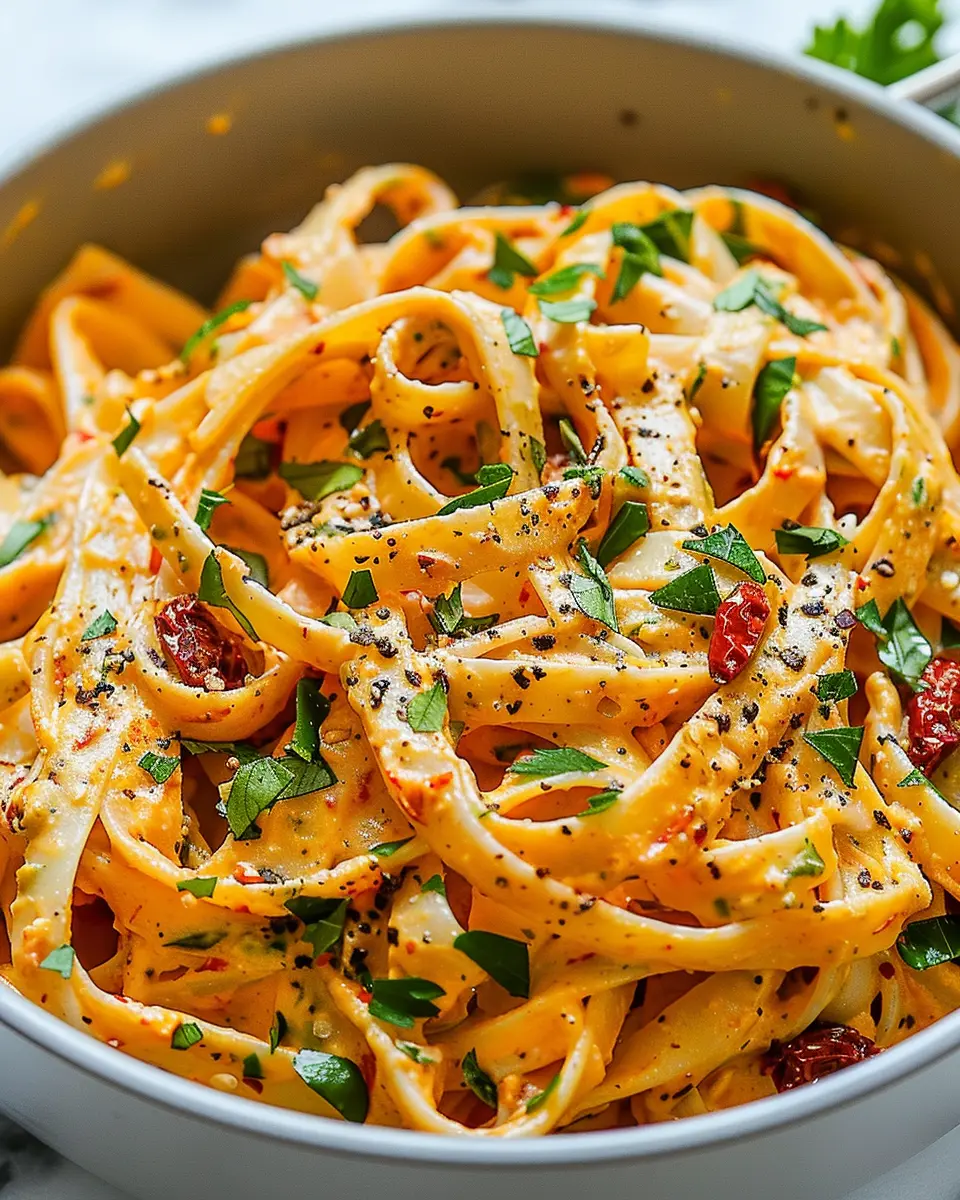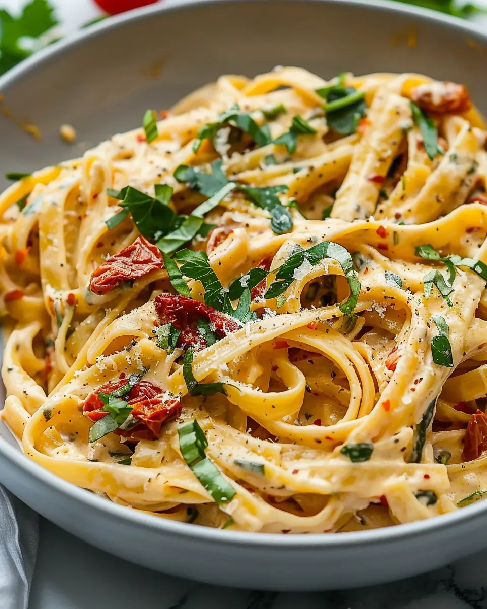 A generous serving of Vegan Creamy Sun Dried Tomato Pasta typically contains around 350 calories. This makes it a satisfying option for lunch or dinner without overloading on calories. If you’re aiming for a balanced meal, consider pairing it with a fresh salad or some steamed vegetables to elevate both nutrition and enjoyment.
