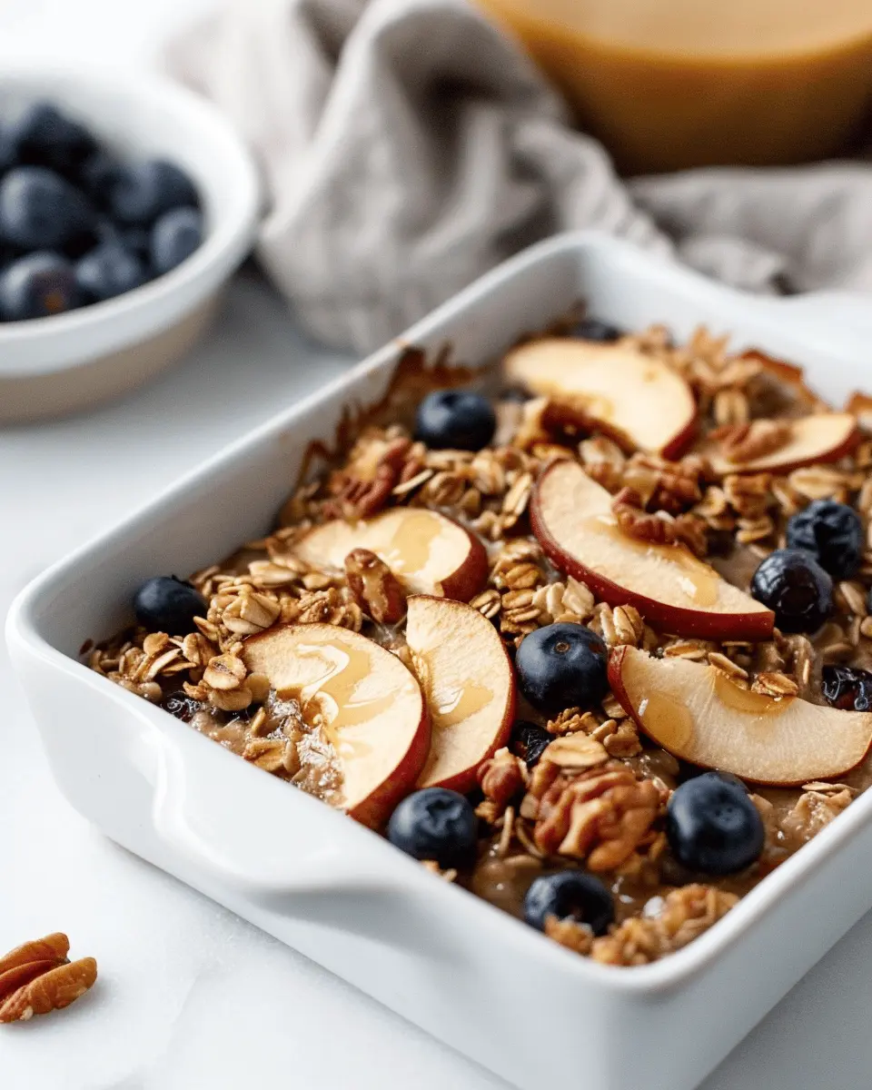 Want to add some crunch and protein? Experiment with various nuts! Walnuts and almonds work beautifully, giving your wholesome baked oatmeal an earthy flavor. Pecans add a sweet, buttery note, while hazelnuts lend a unique richness that sets it apart.
